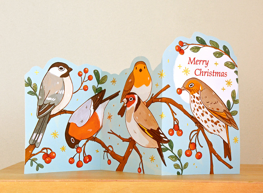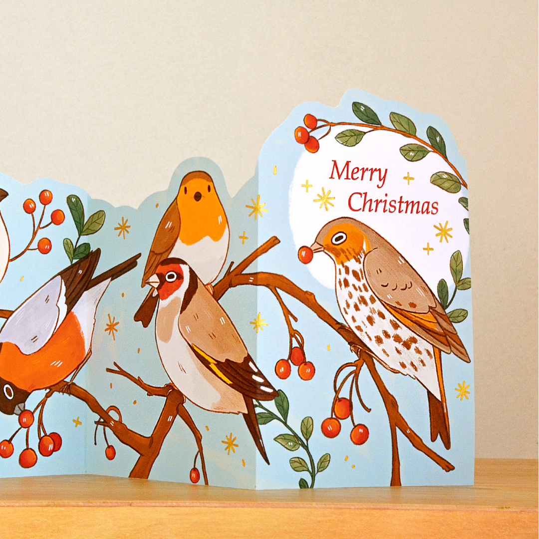 Winter Birds Concertina Postcard