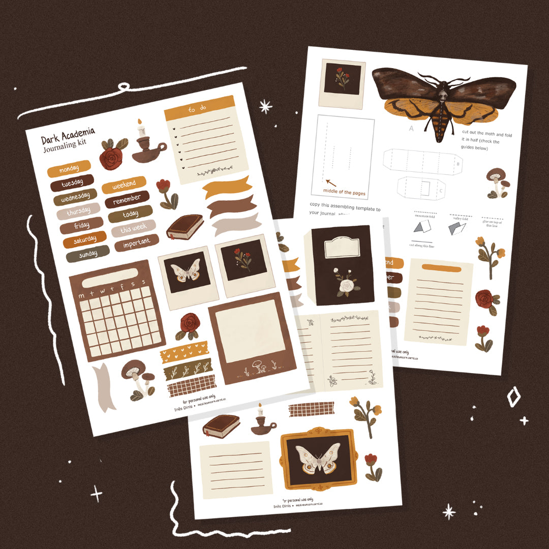 3 pages full of magical dark academia and witchy things! It also comes with a bunch of interactive decorations, where you can write your notes! Perfect to stick to your planners and sketchbooks !🍂