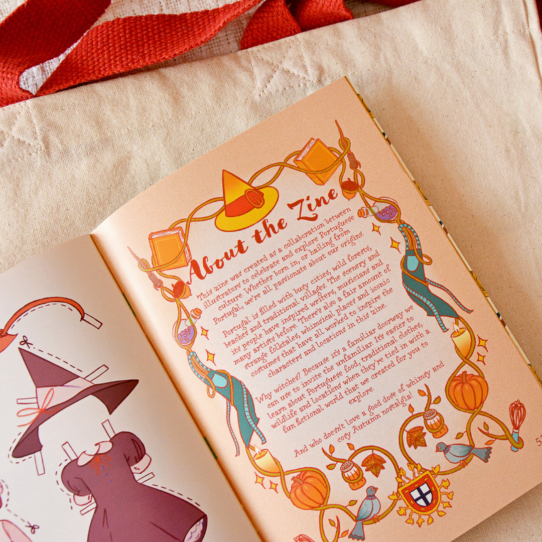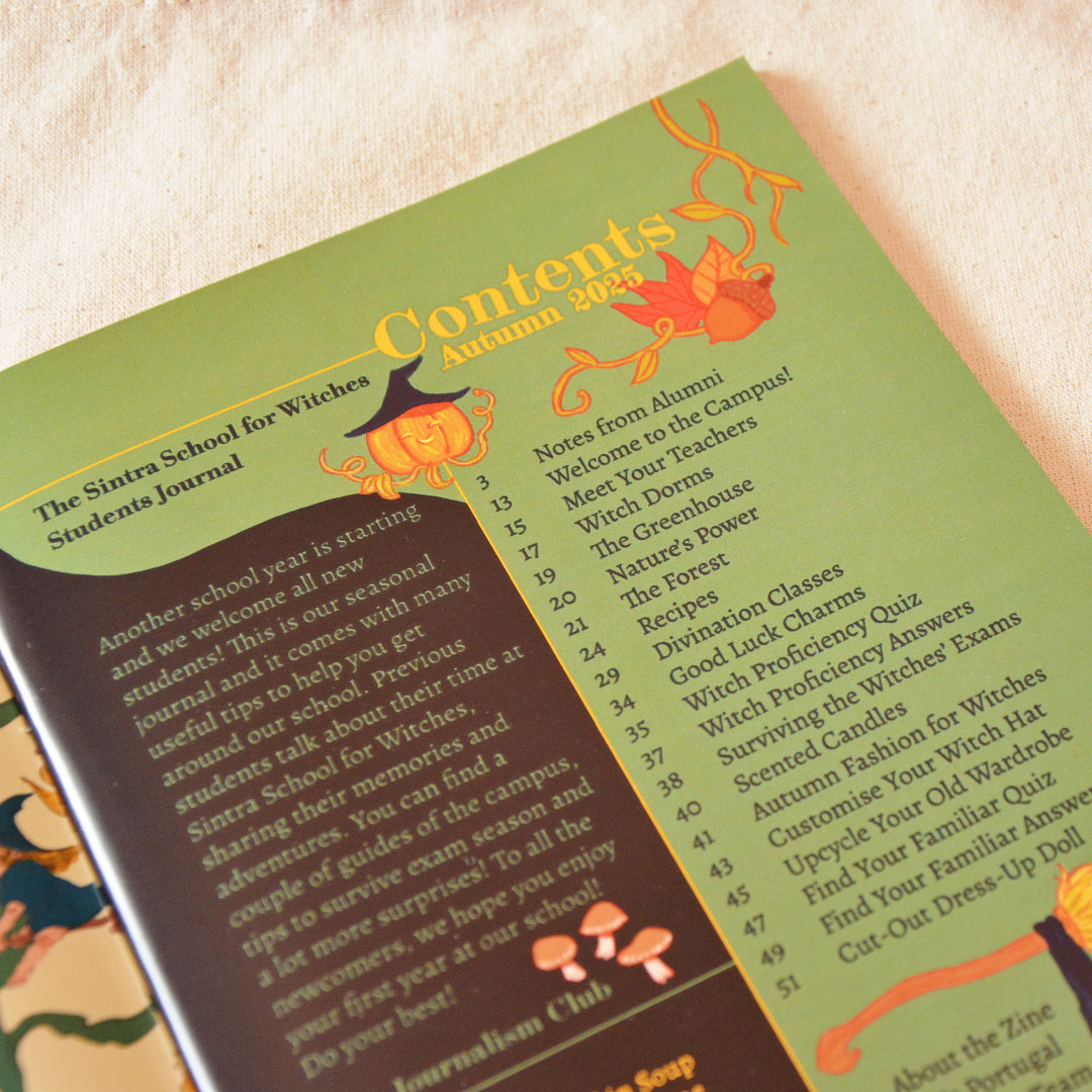 Dive into the fictional Sintra School for Witches and enjoy this issue featuring tasty recipes, divination games, quizes, self care tips, character and location pages, and curious facts about Portugal!